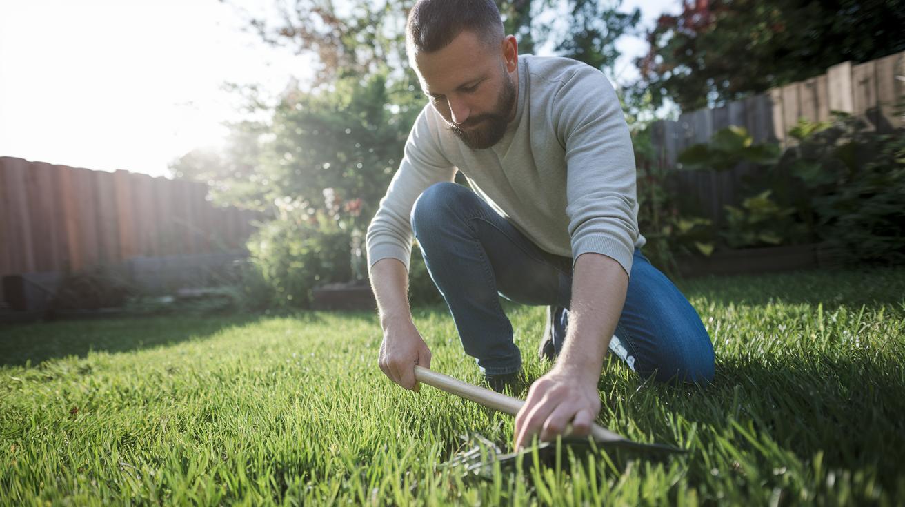 Now let’s talk thatching. Thatch is a thin layer of dead grass and roots sitting on top of your soil. Use a dethatching rake with sturdy tines to break up those mats and free seedlings hiding beneath. You’ll get a fresh, airy feel underfoot.
